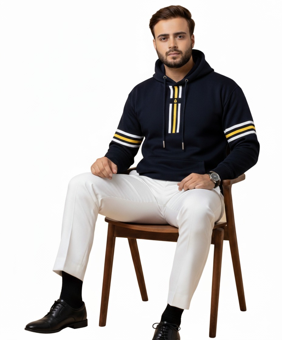 স্টাইল এবং ব্যক্তিত্ব: কালো ও নেভি ব্লু - এই দুটি ক্লাসিক এবং ফ্যাশনেবল রঙে আপনি আপনার পছন্দেরটি বেছে নিতে পারেন। হুডির মেটাল ড্রস্টিং এবং প্রিমিয়াম রাবার প্রিন্ট - সব মিলিয়ে তৈরি করে একটি হাই-এন্ড প্রিমিয়াম লুক।